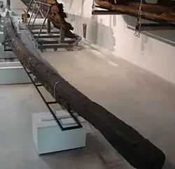 - Z wraku wydobyto 96 sztuk desek o długości od 185 do 252 cm i szerokości od 18,5 do 30,5 cm. Deski te są klinowe w przekroju, mają grubość od 1,5 do 3 cm na cieńszym końcu i 4–6 cm na grubszym. Sporządzone starannie z bardzo dobrej dębiny (bez sęków i rdzenia). Deski te pochodzą prawdopodobnie z dorzecza Niemna. Niektóre zostały przycięte na długość 85–180 cm, przypuszczalnie w celu wpasowania ich w wolne miejsca między wzmocnieniami kadłuba statku[32].