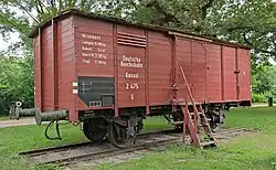 - ↑ Z opisu na tablicy w pobliżu wagonu-pomnika