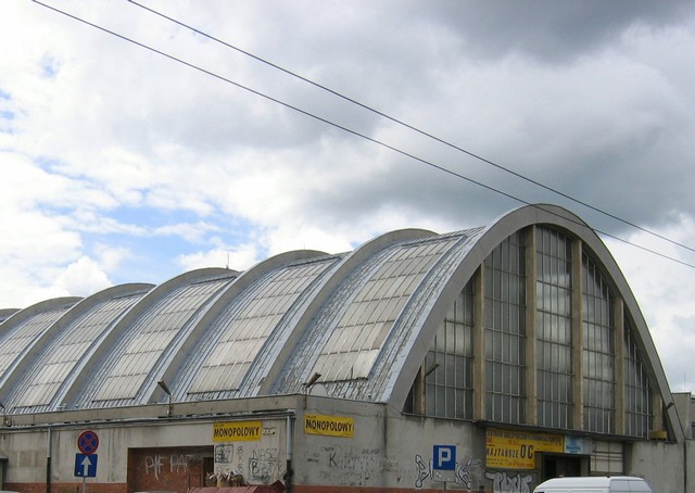 ![]() Dawna hala owocowo-warzywna, od 1994 roku własność Miejskich Hal Targowych SA przed remontem (stan z 2007 roku). Widok od skrzyżowania ul. Jana z Kolna i ul. 3 Maja | |