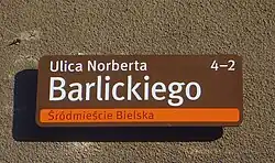 - ↑ Marcin Czyżewski. Bielsko-Biała ubrane w niezwykle eleganckie tabliczki. „Gazeta Wyborcza Bielsko-Biała”, 2 listopada 2009. Bielsko-Biała.