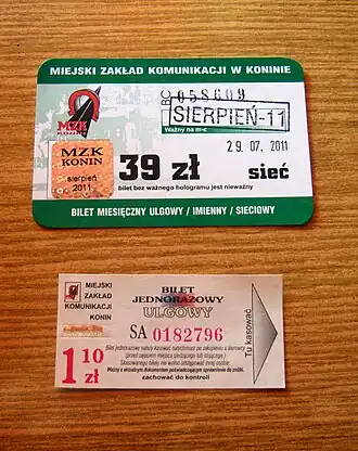 - ↑ CENNIK BILETÓW. mzk-konin.com.pl. [dostęp 2011-08-15]. (pol.).