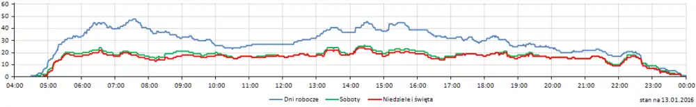 - ↑ Ten wskaźnik mówi o stopniu wykorzystania taboru w godzinach szczytu w dni robocze okresu szkolnego.