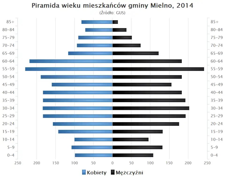 - Piramida wieku mieszkańców gminy Mielno w 2014 roku[8].
