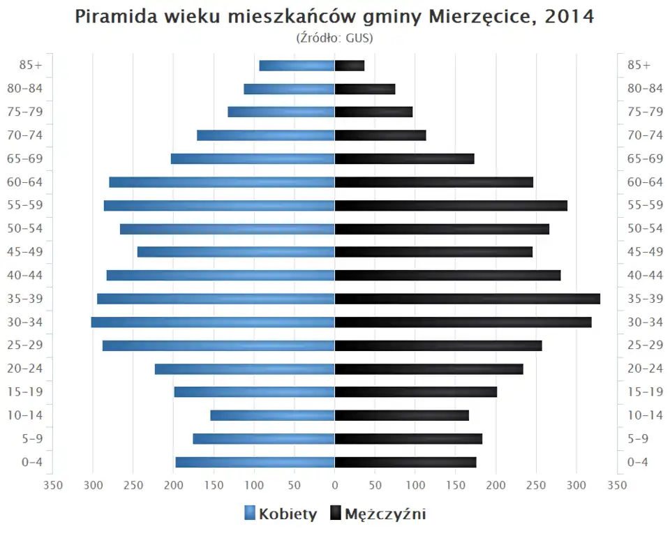 - Piramida wieku mieszkańców gminy Mierzęcice w 2014 roku[1].