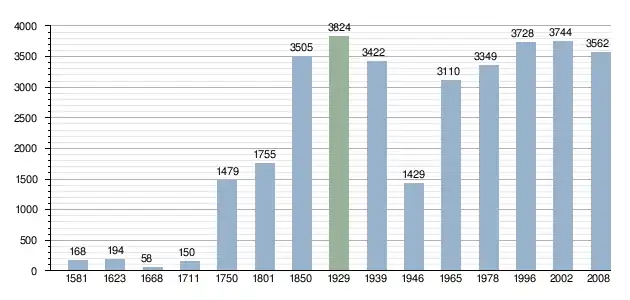 Wykres liczby ludności miasta Mieszkowice na przestrzeni wieków[38]: