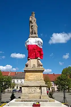 - Pomnik Mieszka I stojący na rynku, postawiony w 1957 r. na XVIII-wiecznym cokole z wielobarwnego piaskowca, dla uczczenia 1000-lecia miasta, według projektu Sławomira Lewańskiego