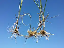 - Zielona roślina, tworząca rozłogi i luźne kępy.