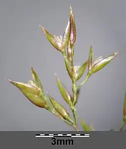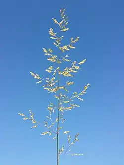 - Wiatropylna, kwiatostan w postaci długiej na 15 cm wiechy. Białawe, podłużne i drobne kłoski wytwarzają jeden kwiatek.
