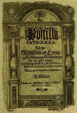 Przekład Postylli mniejszej Jakuba Wujka, który ukazał się w Wilnie w roku 1599[6] pod tytułem Postilla catholicka, tái est Ižguldimas ewangeliu kiekwienos nedelos ir szwętes per wissús metús[8], uchodzi za jeden z najcenniejszych zabytków piśmiennictwa starolitewskiego[6]. Tekst przedrukowano w latach 1904, 1909, 1926, 1927, 1929 i 2000[6][4].