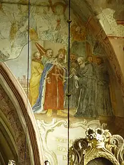 - ↑ Za element tych dekoracji uznawano sześć obrazów ze scenami z życia św. Jana Kantego, zachowanych w prezbiterium tego kościoła, PSB ↓, s. 571. Jednak późniejsze badania wykluczyły taką możliwość, Prószyńska 1979 ↓, s. 224.