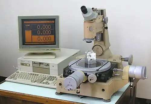 Mikroskop warsztatowy - optyczne urządzenie pomiarowe, które służy do bezdotykowego pomiaru długości przedmiotów w układzie współrzędnych prostokątnych oraz kątów. Wykorzystywany jest najczęściej w laboratoriach pomiarowych i w przemyśle maszynowym (izba pomiarów, narzędziownia).