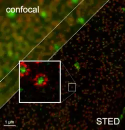 - ↑ T.A. Klar, S.W. Hell, Subdiffraction resolution in far-field fluorescence microscopy, „Optics Letters”, 24 (14), 1999, s. 954–956, ISSN 0146-9592, PMID: 18073907 [dostęp 2017-06-08].