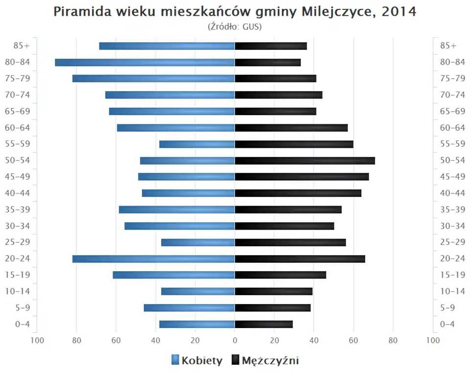 - Piramida wieku mieszkańców gminy Milejczyce w 2014 roku[9].