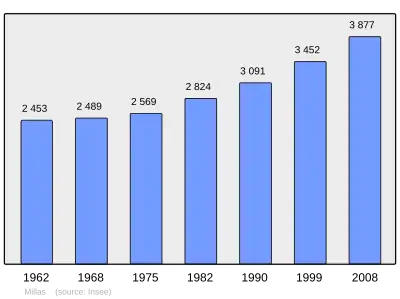 Według danych na rok 1990 gminę zamieszkiwało 3091 osób, a gęstość zaludnienia wynosiła 162 osoby/km² (wśród 1545 gmin Langwedocji-Roussillon Millas plasuje się na 124. miejscu pod względem liczby ludności, natomiast pod względem powierzchni na miejscu 407.).