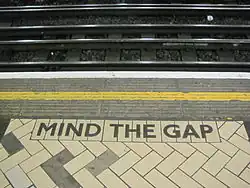 Mind the gap – komunikat dźwiękowy lub wizualne ostrzeżenie skierowane do pasażerów kolei podziemnej, aby zachować ostrożność podczas przekraczania odstępu między pociągiem, a peronem. Wyrażenie to można przetłumaczyć jako „Uwaga na odstęp pomiędzy peronem a pociągiem”, natomiast bardziej ogólnie znaczy „Proszę zachować ostrożność przy wsiadaniu do pociągu/ wysiadaniu z pociągu”.