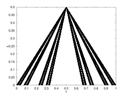 Niech będzie zbiorem Cantora zawartym w odcinku oraz niech Dla każdego punktu niech oznacza odcinek łączący punkt z punktem Jeśli jest końcem pewnego przedziału usuwanego podczas konstrukcji zbioru Cantora, to niech