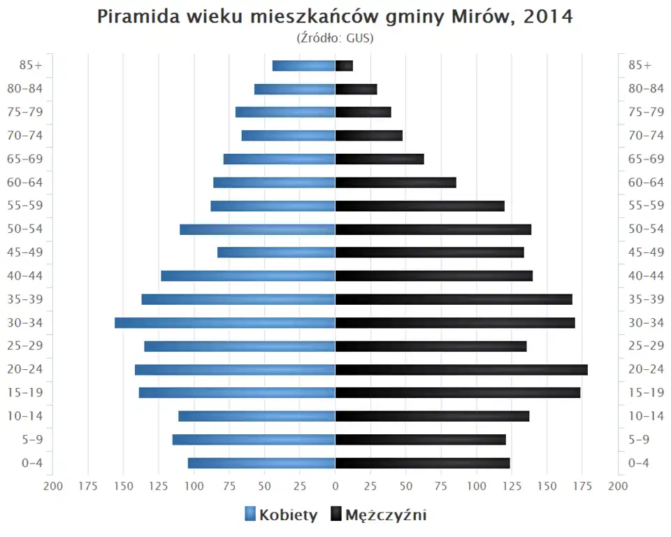 - Piramida wieku mieszkańców gminy Mirów w 2014 roku[10].