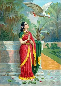 - Damajanti (Damayanti). Kiedy Jan rozbija się na nieznanej wyspie, spotyka i z wzajemnością zakochuje się w Damajanti, która przypomina widmo materializowane przez Mirandę. Mitologiczną Damajanti z Damajanti Langego łączy z kolei motyw tragicznego romansu, który ma podłoże w kwestiach metafizycznych. Bohaterka eposu poślubia imperatora Nalę, czemu przeciwni są bogowie; w efekcie Kali sprowadza na nich ubóstwo, a następnie rozdziela. Damajanti Langego poświęca się w ofierze, ponieważ miłość do zwykłego człowieka jest przeciwna zasadzie doskonalenia się duchowego.