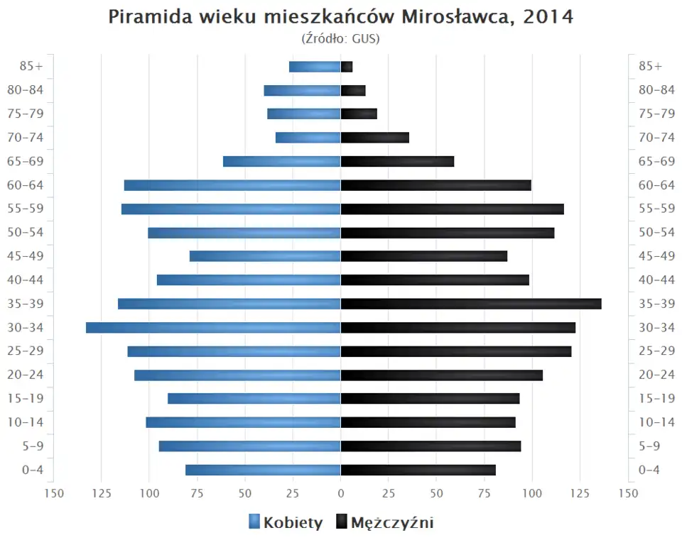 - Piramida wieku mieszkańców Mirosławca w 2014 roku[1].