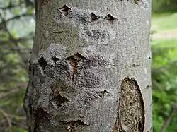 Plechy misecznicy na pniu jarzębiny | |