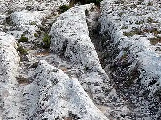 - ↑ Derek Mottershead, Alastair Pearson, Martin Schaefer. The cart ruts of Malta: an applied geomorphology approach. „Antiquity”. 82 (318), s. 1065-1079, 2008. Oxford University Press. (ang.).