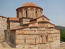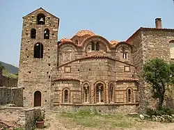 Klasztor stanowił centrum życia kulturalnego i intelektualnego XV-wiecznej Mistry. W jego murach nauczał neoplatoński filozof Gemistos Plethon. Do dziś zachowały się pozostałości po dawnych celach mnichów. Na terenie klasztornym stały niegdyś dwa kościoły. Starszy z nich, Agií Theódorii, powstał w 1295 roku. Jego kopuła wsparta na ośmiu łukach jest największa w całym mieście. W nowszym, pochodzącym w 1310 roku kościele Afendikó znajdują się dobrze zachowane freski z okresu jego budowy. Na sklepieniu południowym przedstawiono Chrzest Chrystusa, zaś nad ołtarzem – Wniebowstąpienie. Najlepiej zachowane freski znajdują się w północnej części narteksu. Sklepienie wieńczy sześć kopuł.