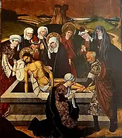 - W korpusie i w predelli znajdują się figury rzeźbione i scena Zaśnięcia Marii z wyryta datą "1492" - autorstwo regionalnego warsztatu rzeźbiarskiego[20], Po bokach, na skrzydłach trzy sceny z życia Marii i Jezusa na każdym.