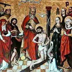 - Chrystus Bolesny ofiarowany przez Boga Ojca – 124 × 127 cm, tempera na podłożu z drzewa świerkowego, tło złocone z tłoczonym ornamentem roślinnym; obraz wotywny, tempera na podłożu z drewna świerkowego, tło złocone ornamentem roślinnym, wykonany dla kościoła św. Elżbiety. W 1946 roku przewieziony do Muzeum Narodowego w Warszawie;.