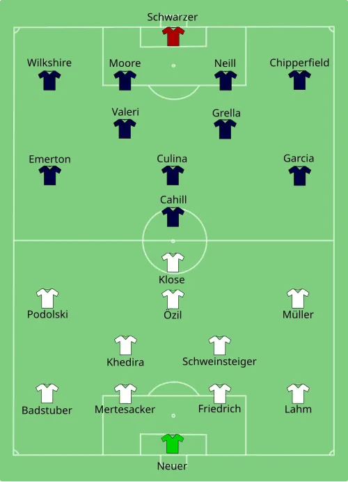 - ↑ Germany 4-0 Australia, Man of the Match. FIFA.com, 2010-06-13. [dostęp 2010-06-13]. [zarchiwizowane z tego adresu (2015-02-15)]. (ang.).