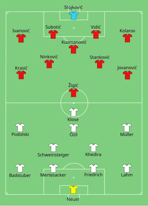 - ↑ Germany 0-1 Serbia, Man of the Match. FIFA.com, 2010-06-18. [dostęp 2010-06-18]. [zarchiwizowane z tego adresu (2010-06-19)]. (ang.).
