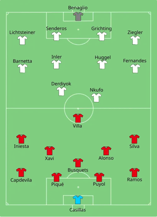 - ↑ Spain 0-1 Switzerland, Man of the Match. FIFA.com, 2010-06-16. [dostęp 2010-06-16]. [zarchiwizowane z tego adresu (2010-06-26)]. (ang.).