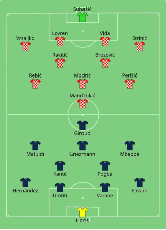 - ↑ 2018 FIFA World Cup Russia™ – Matches – France – Croatia – FIFA.com [online], fifa.com [dostęp 2018-07-17] [zarchiwizowane z adresu 2018-07-15] (ang.).