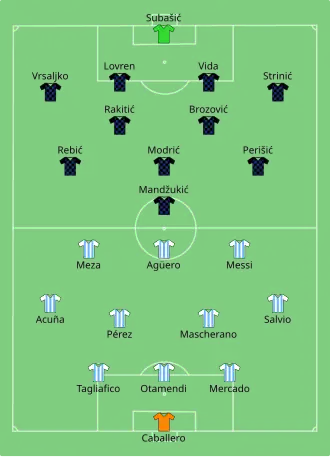 Dwie najlepsze drużyny z grupy D (Chorwacja i Argentyna) w 1/8 finału spotkały się z zespołami z grupy C (Francja i Dania).