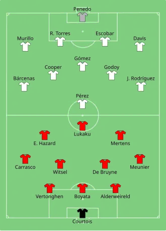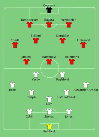 Dwie najlepsze drużyny z grupy G (Belgia i Anglia) w 1/8 finału spotkały się z zespołami z grupy H (Kolumbia i Japonia).