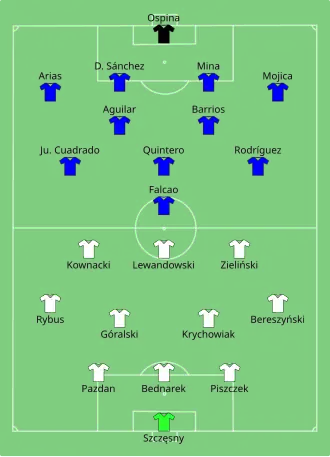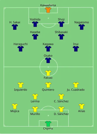 Dwie najlepsze drużyny z grupy H (Kolumbia i Japonia) w 1/8 finału spotkały się z zespołami z grupy G (Belgia i Anglia).