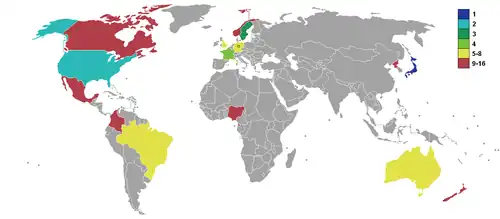 Ameryka Północna i Karaiby: Oceania: Ameryka Południowa: |