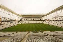 *- Lista zawiera 13 aren zamiast docelowych 10. Prawdopodobnie z każdego z trzech miast, Belo Horizonte, Porto Alegre i São Paulo zostanie wybrany jeden stadion.
