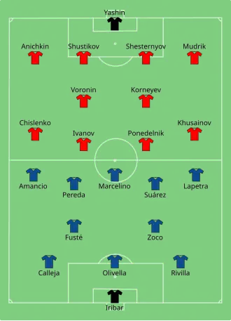 | 1:1[4] | Amancio Amaro | 1/8 finału – 1 mecz | 2:0[5] | Wiktor Poniedielnik, Igor Czislenko | ||