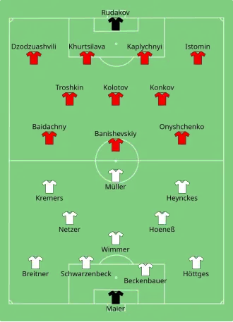 | 2:1[6] | Gerd Müller x2 | Półfinały | 1:0[7] | Anatolij Końkow | ||