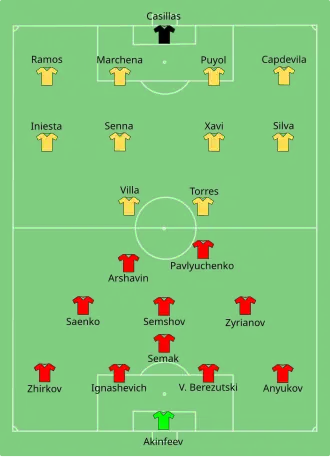 - ↑ Full-time report Russia-Spain. uefa.com. [dostęp 2008-06-26]. (ang.).