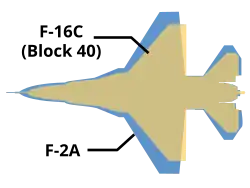 | Wielkość anteny radaru | Radar AN/APG-68 (mniejszy) | Radar Mitsubishi J/APG-1 (większy) |