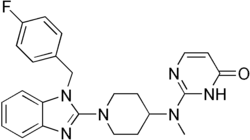CN(C1CCN(CC1)C2=NC3=CC=CC=C3N2CC4=CC=C(C=C4)F)C5=NC=CC(=O)N5 |