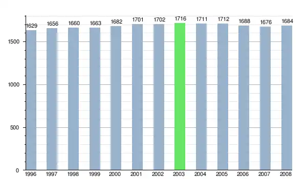 Według danych z dnia 31 grudnia 2012, wieś zamieszkiwało 1726 osób, w tym 877 kobiet i 849 mężczyzn[8].