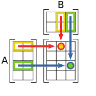 O zwykłym iloczynie macierzy można myśleć jak o iloczynie skalarnym listy kolumnowej wektorów przez listę wierszową wektorów. Jeżeli
