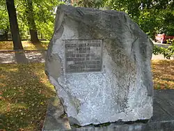 Głaz upamiętniający erygowanie osiedla "Za torem" Głaz upamiętniający wmurowanie aktu erekcyjnego pod budowę osiedla „Za torem” w 1934 r. Staraniem mieszkańców osiedla „Za torem” w 1998 r. w miejscu wmurowania aktu erekcyjnego stanął pomnik-głaz upamiętniający fakt budowy osiedla oraz 80. rocznicę odzyskania przez Polskę niepodległości[30].