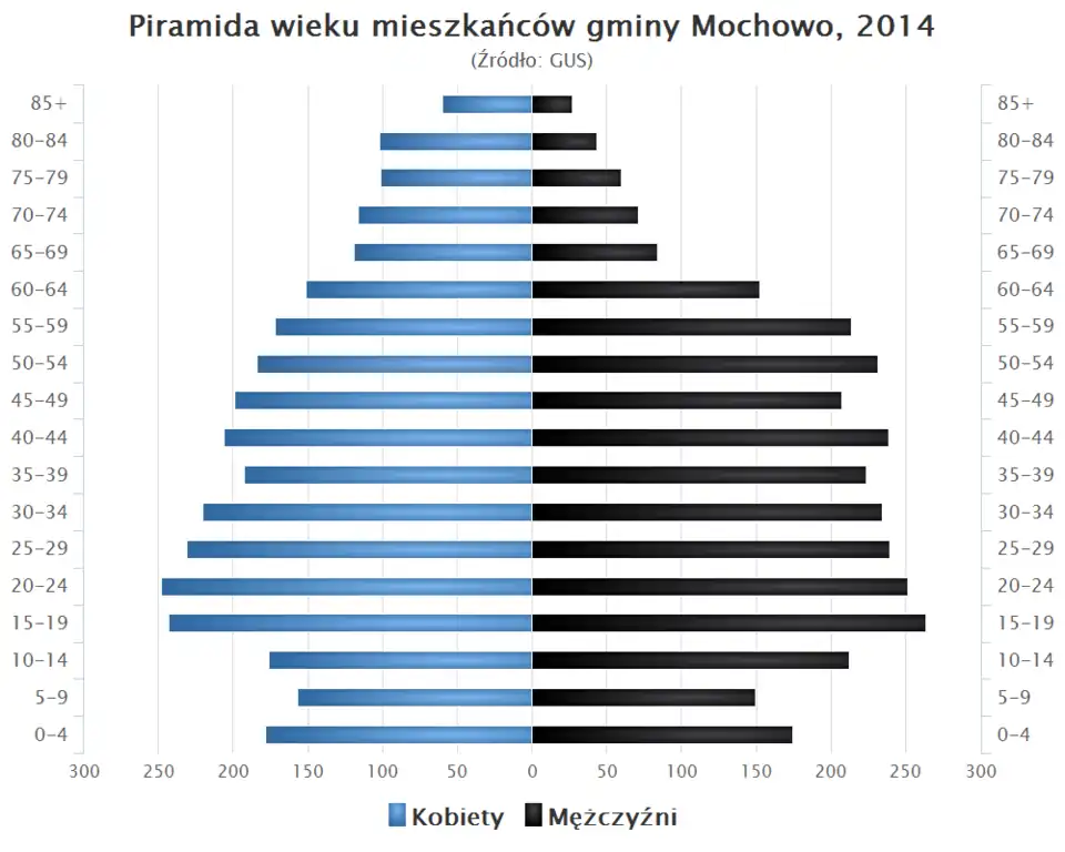 - Piramida wieku mieszkańców gminy Mochowo w 2014 roku[6].