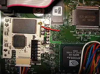 Modchip (skrót od modification chip) – chip montowany wewnątrz urządzenia, zazwyczaj w postaci pamięci nieulotnej np. EEPROM, modyfikujący oryginalne oprogramowanie i przez to pozwalający na uruchamianie nieautoryzowanych aplikacji na tym urządzeniu, takich jak: