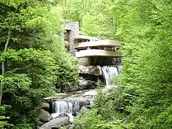 - Dom Kaufmannów Falling Water w Bear Run, Frank Lloyd Wright, 1935–1939 – willa znana jako dom nad wodospadem, zbudowana na organicznym rzucie z silnym podkreśleniem elementów poziomych, przede wszystkim poprzez dużą ilość wsporników i okapów
