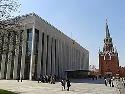 - Biurowiec Centrosojuzu w Moskwie (ob. Federalny Urząd Statystyczny Rosji), Le Corbusier, 1929–1934 – a właściwie wielofunkcyjny budynek centralny federacji spółdzielców z biurami, salą widokową, bankiem, pomieszczeniami wystawowymi, salkami seminaryjnymi i częścią sportową, zbudowany jako wynik konkursu. Bryła Centrosojuzu została zestawiona z geometrycznych form. Efekt architektoniczny został oparty na prowadzeniu komunikacji we wnętrzu (rampy piesze) i skontrastowaniu szklanej i kamiennej fasady. Po raz pierwszy w historii została zastosowana na taką skalę dwuwarstwowa szklana elewacja ze zintegrowaną wentylacją.