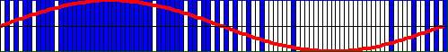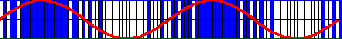 Jeden okres funkcji sinus przedstawiony za pomocą 100 bitów w modulacji PDM wygląda następująco: